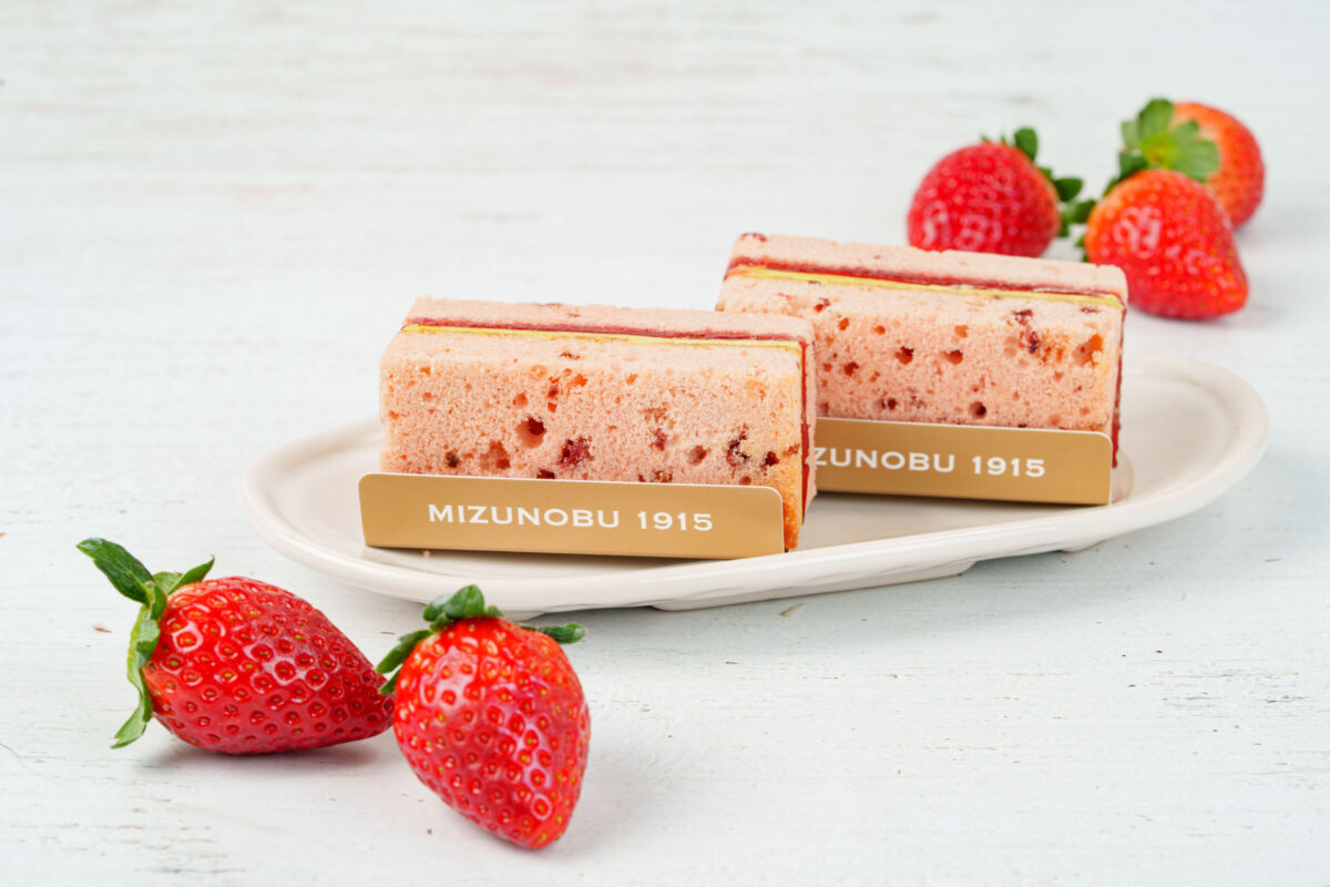 仕上げには、甘酸っぱい苺ジャムとピスタチオのバタークリームを贅沢にサンドし、美しい断面の色合いにもこだわっています。