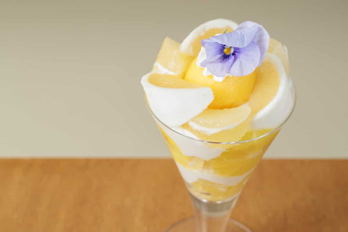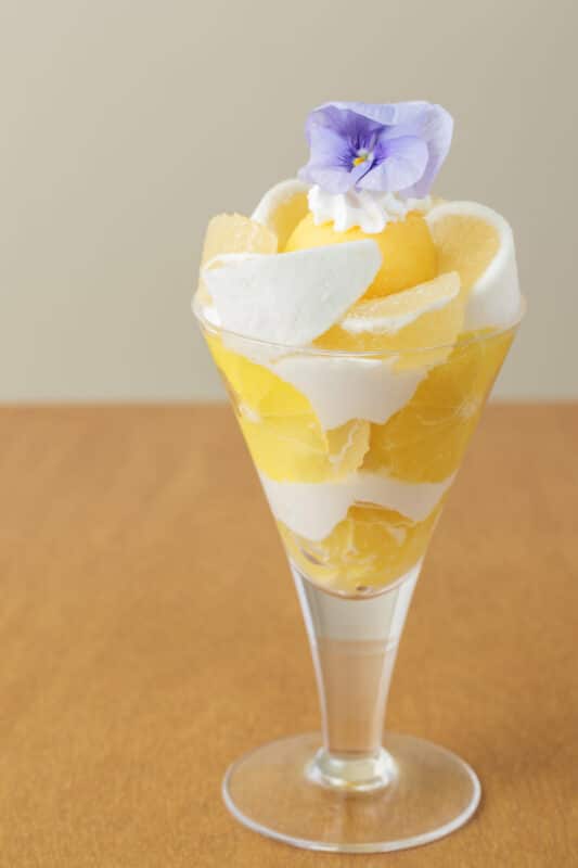 ビタミンカラーに元気をもらえそうな旬の和柑橘が一度に楽しめるリッチなパフェをご紹介します。