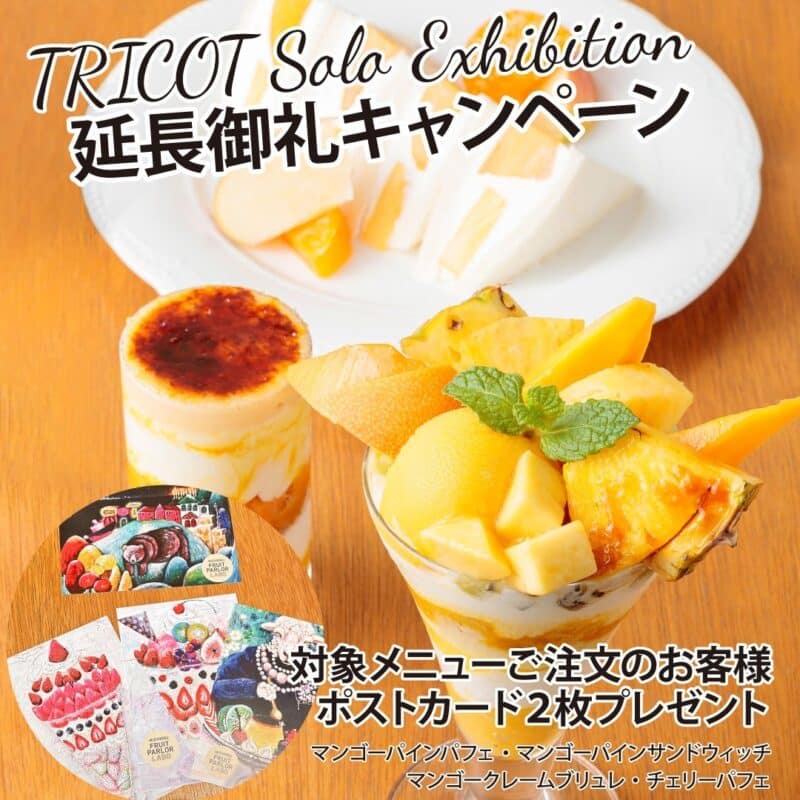 アーティスト・TRICOT氏のアート展示が6月12日まで延長になったことを記念し、感謝キャンペーンを行います。