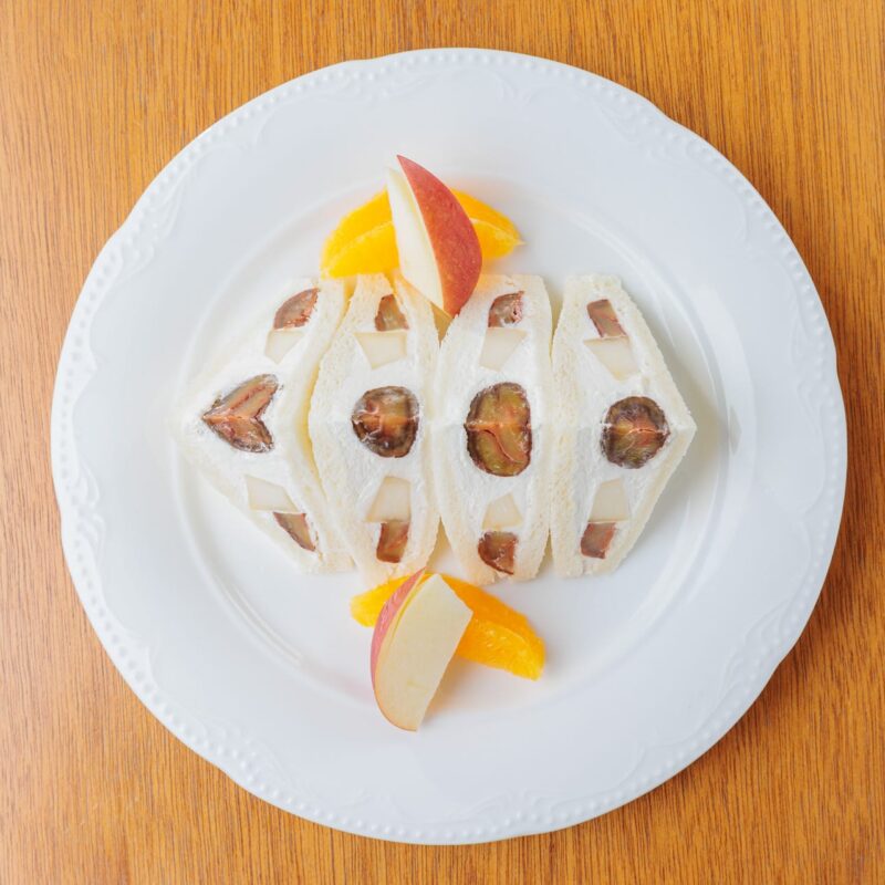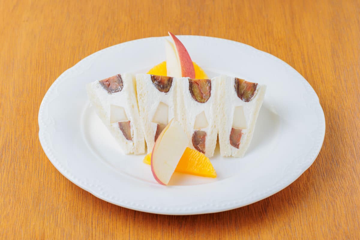 当店配合のオリジナルクリーム、栗と厳選した洋梨をふんだんに使用した季節限定のサンドウィッチです。