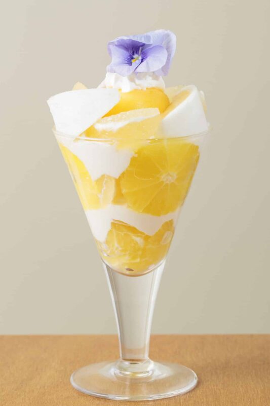 甘みと爽やかな酸味のハーモニーが楽しめる湘南ゴールドと日向夏を主役に、爽快感あふれる日向夏シャーベットとヨーグルトアイス、さらにクリーミーなソフトクリームとシャンティーを合わせました。