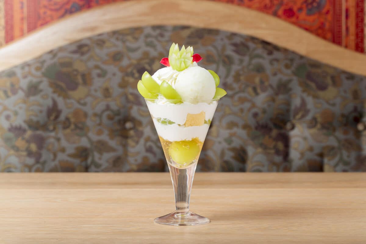 爽やかな香りと弾力のある食感のシャインマスカットが主役のパフェ。